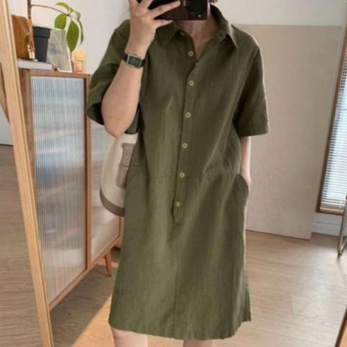 [엄지척]여성 여름 반팔 카라 단추 셔츠원피스 린넨원피스 2색_19911870_667501