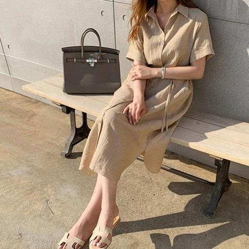 [엄지척]여성 린넨 반팔 롱원피스 셔츠원피스 데일리룩_19951643_667501