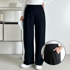 쫀쫀밴딩 핏노블 여성 밴딩 슬랙스 핀턱 와이드 팬츠