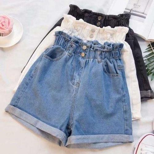 [에이치플러스몰]블루진 숏팬츠투버튼 여자 밴드라인 클래식 청반바지