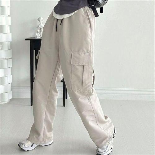바스락 통바지 카고바지 여름 여성 스트링 하의 데일리 와이드 WFKBXJO