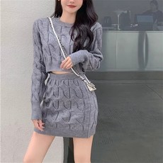 에쥬아 여성 니트 투피스 크롭니트+미니스커트 상하세트 꾸안꾸 파티룩 연말룩