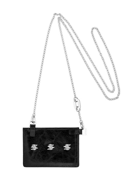 [센티멍] 넘버 629 버니쉬 스파이키 레더 카드 월렛 크로스 네크리스