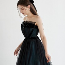 블랙 웨딩 이브닝 쇼트 드레스 피로연 의상 연주복 공연