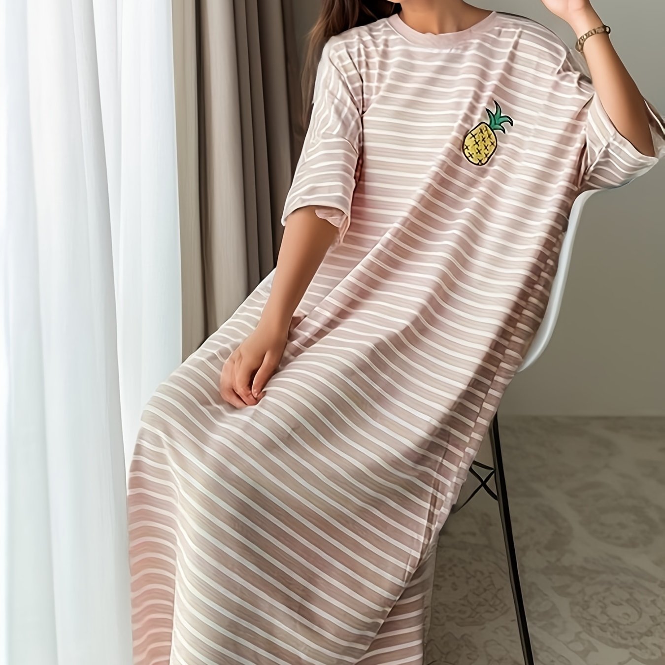 TEMU 여성 심플 반팔 맥시 티셔츠 드레스 라운지웨어 루즈 나이트드레스, 캐주얼 여름 홈 크루넥 파자마 튜닉 롱 드레스