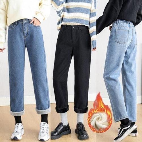 부엉구구 OW0004A 여성 겨울 캐주얼 기모 일자 루즈핏 데님 팬츠