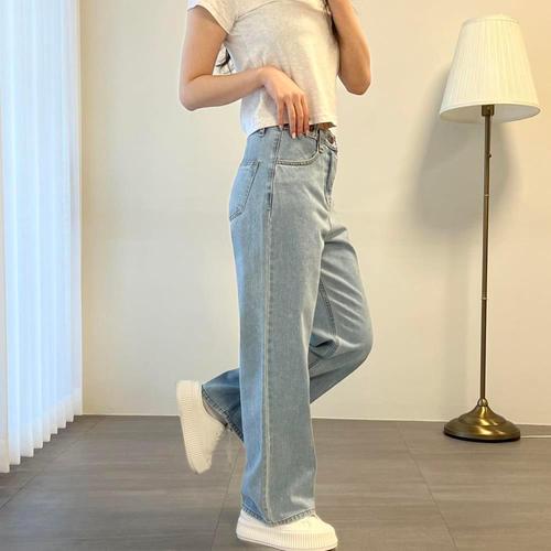 [옷자락] 여자 연청색 와이드핏 통큰 데님팬츠 청바지