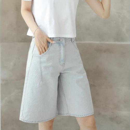 여자 5부 데님 반바지 청반바지 연청 와이드 데님팬츠 WEF102F