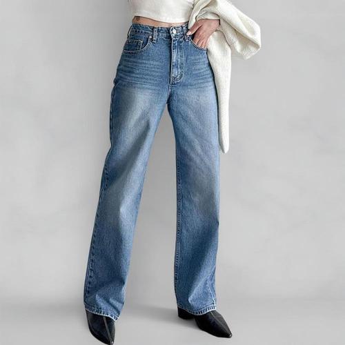 여성용 컴포터블 일자 와이드 데님 팬츠 기본