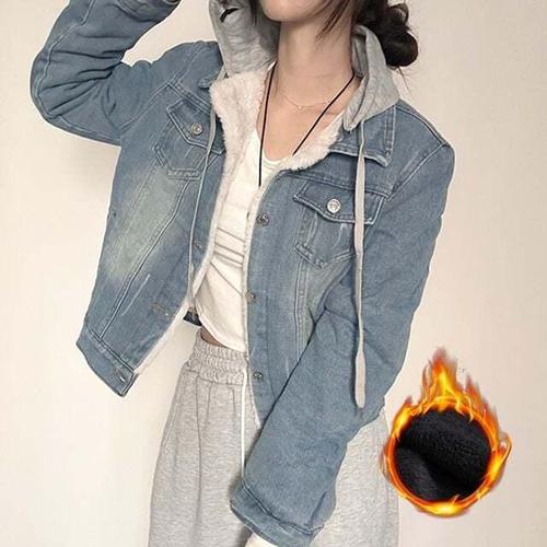 [다잇템]여자 연청 슬림 레이어드 후드집업 청자켓 점퍼