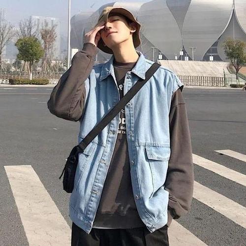 오버핏연청 데님셔츠자켓 남자 캐주얼 스트릿데일리룩 WFKXTVB