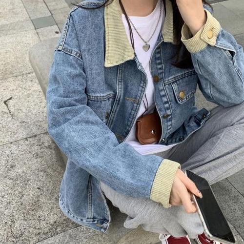 여성 배색 카라 골덴 연청 캐주얼 데님 자켓 LK-J005