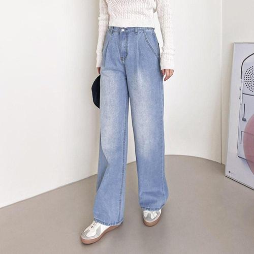 [신상오픈런]여성 세미와이드 연청 워싱 청바지 백포켓 디테일 (38284303)