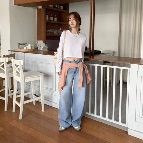 [옷자락] 여자 데일리 와이드핏 연청 데님 바지
