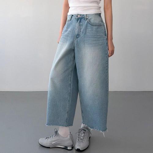 [옷자락] 여자 컷팅 벌룬 와이드핏 워싱 연청 논스판 청바지