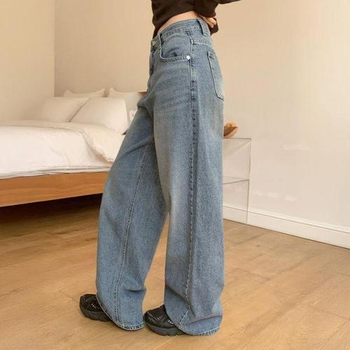 쏘옷 여성용 어센틱 워싱 하이웨이스트 와이드핏 데님 청바지 면100% 사계절