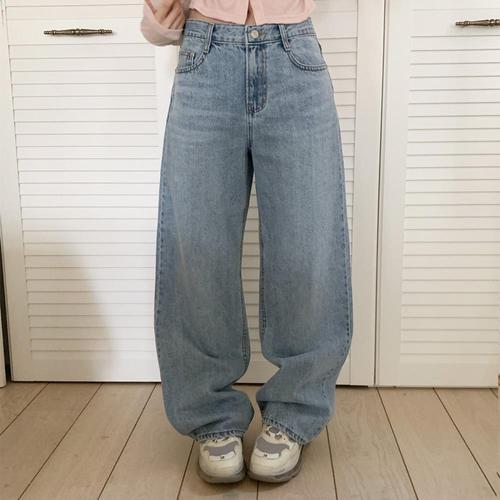 [신상오픈런]여성 벌룬 와이드핏 워싱 연청 청바지