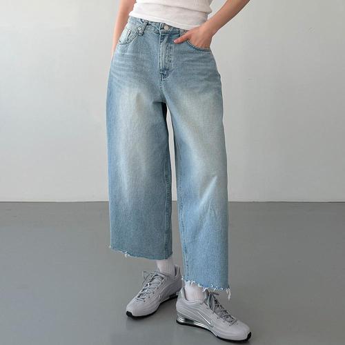 [옷자락] 여자 랑새란 편안한 데일리룩 연청 와이드 일자핏 코튼 데님 팬츠