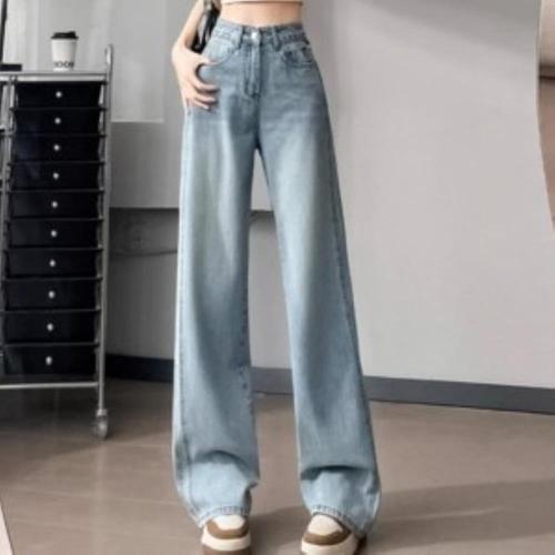 [신상오픈런]여성용 하이웨이스트 연청 루즈핏 와이드 데님 바지