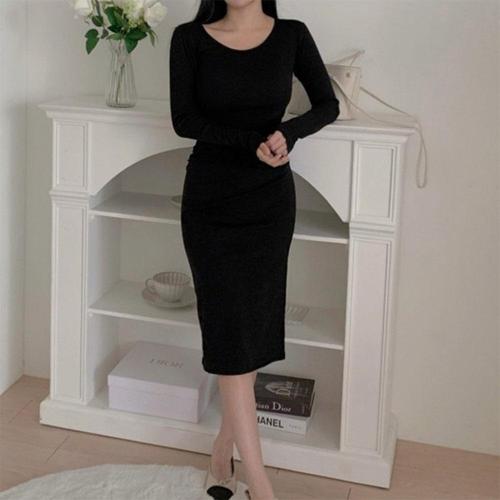 [옷자락]여자 글램룩 무지 옆트임 셔링 유넥 기모 미디 원피스