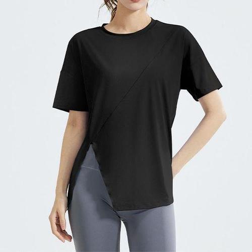 [옷자락]여성 통기성 신축성 루즈핏 옆트임 라운드넥 반팔 티셔츠