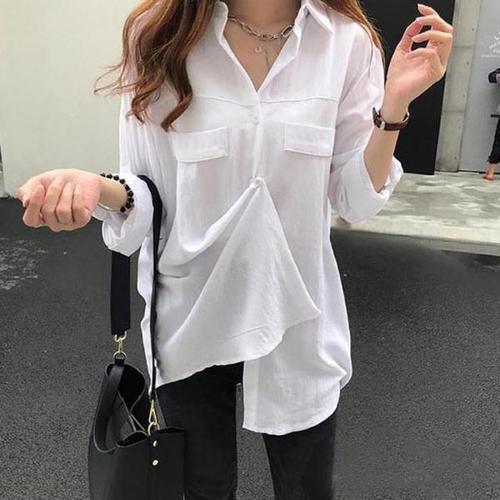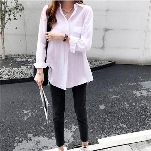 뒷라인 포인트 여성 베이직 스타일 예쁜 롱 셔츠