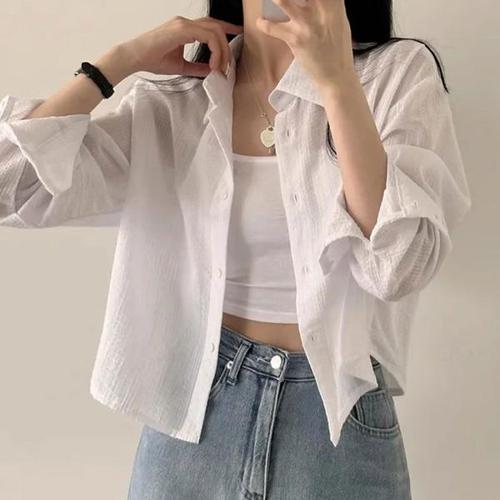 [오너클랜]인기상품 예쁜 파스텔톤 여성 반크롭 잔스트라이프 여성 셔츠 [WED3DB9_250917]
