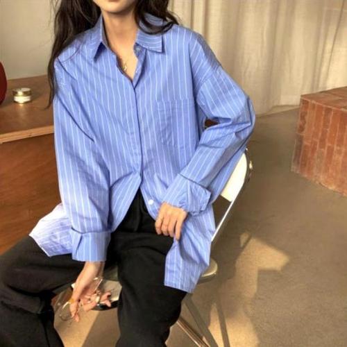 [오너클랜]인기상품 여자 데일리 편한 예쁜 모던 블루 스트라이프 셔츠 [WB12699_250917]