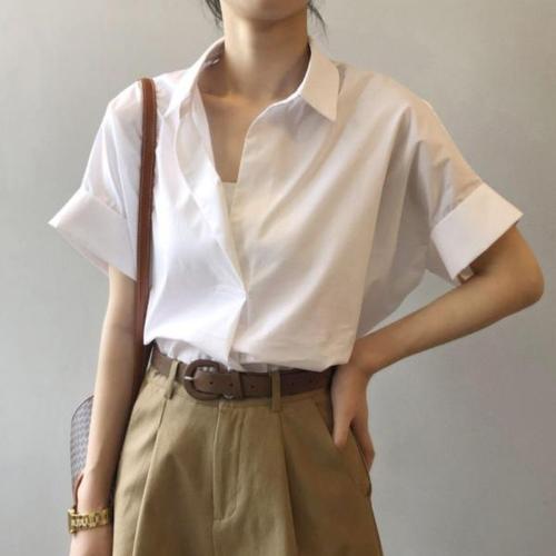 [오너클랜]인기상품 루즈핏 여자 예쁜 오프닝 롤업 반팔 블라우스 셔츠 [WC806E5_250917]