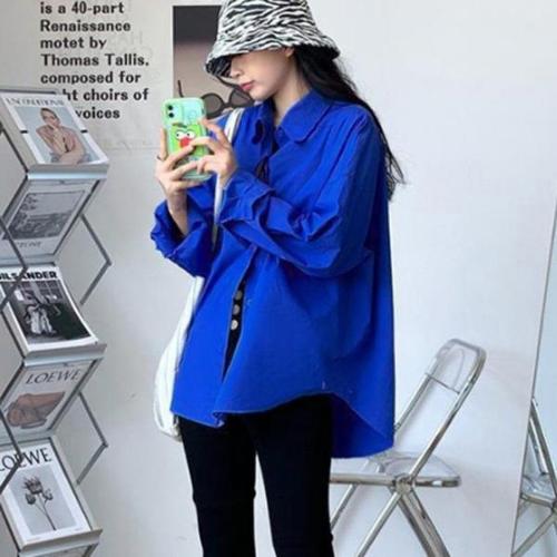 [오너클랜]인기상품 여성 봄가을 색감예쁜 블루블라우스 셔츠 루즈핏 [WC04068_250917]