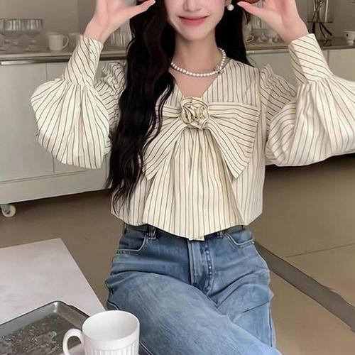 [에이치플러스몰]예쁜 우먼 매듭가로줄 데일리룩 셔츠