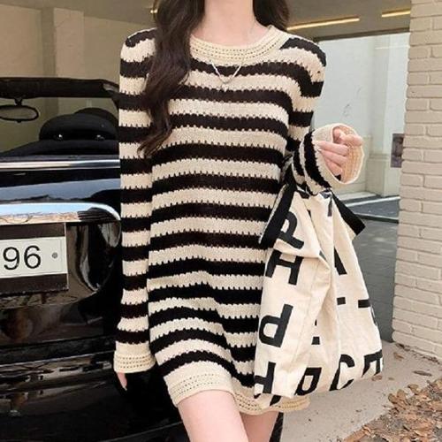 [엄지척]스트라이프 미니 펀칭 여자 긴팔 원피스 데일리 예쁜_19951430_667501