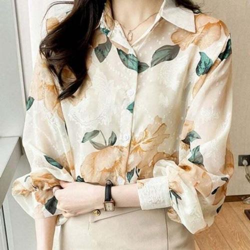 [셀럽하우스]카라텍 LXZV7783 의류 예쁜 긴팔블라우스 시스루 포인트 꽃무늬