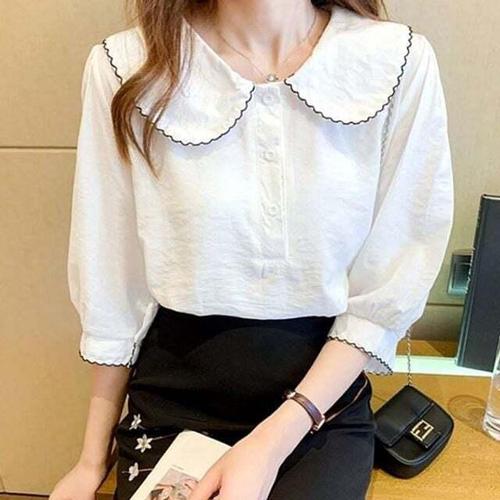 [셀럽하우스]여성 ALXN3875 봄 여름 7부 반팔 예쁜 여자 블라우스 화이트