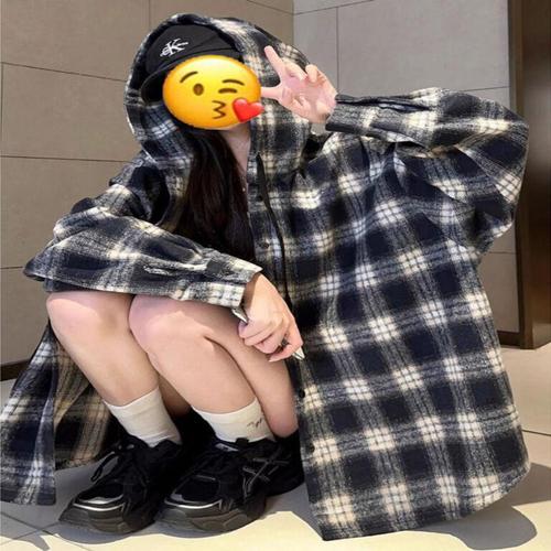 [센트럴몰](편하게예쁜) 체크 루즈핏 톡톡한 후드남방 자켓
