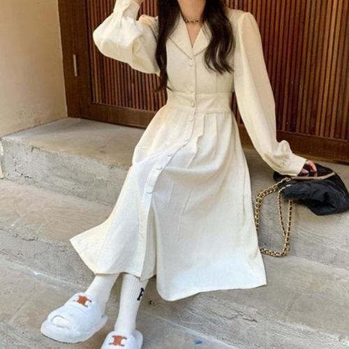 [엄지척]여성 예쁜 스타일 코듀로이 카라넥 롱 진주 원피스_19913909_667501
