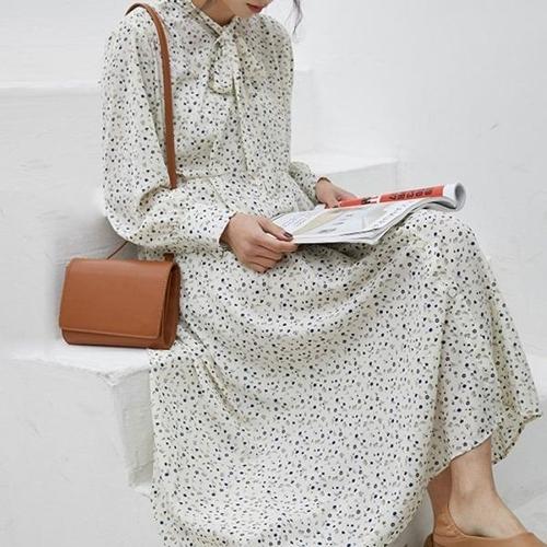 [엄지척]리본 플라워 쉬폰 여성 긴팔 롱 원피스 러블리 예쁜_19913797_667501