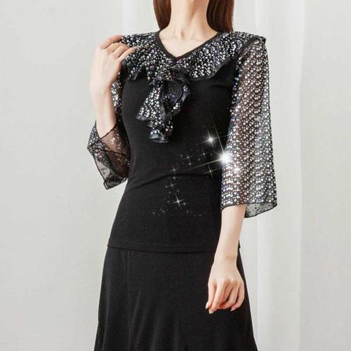 [까르죠아]스팽글 반짝이 러플 블라우스 스포츠 댄스복 라인 줌바 라틴 밸리 살사 차밍