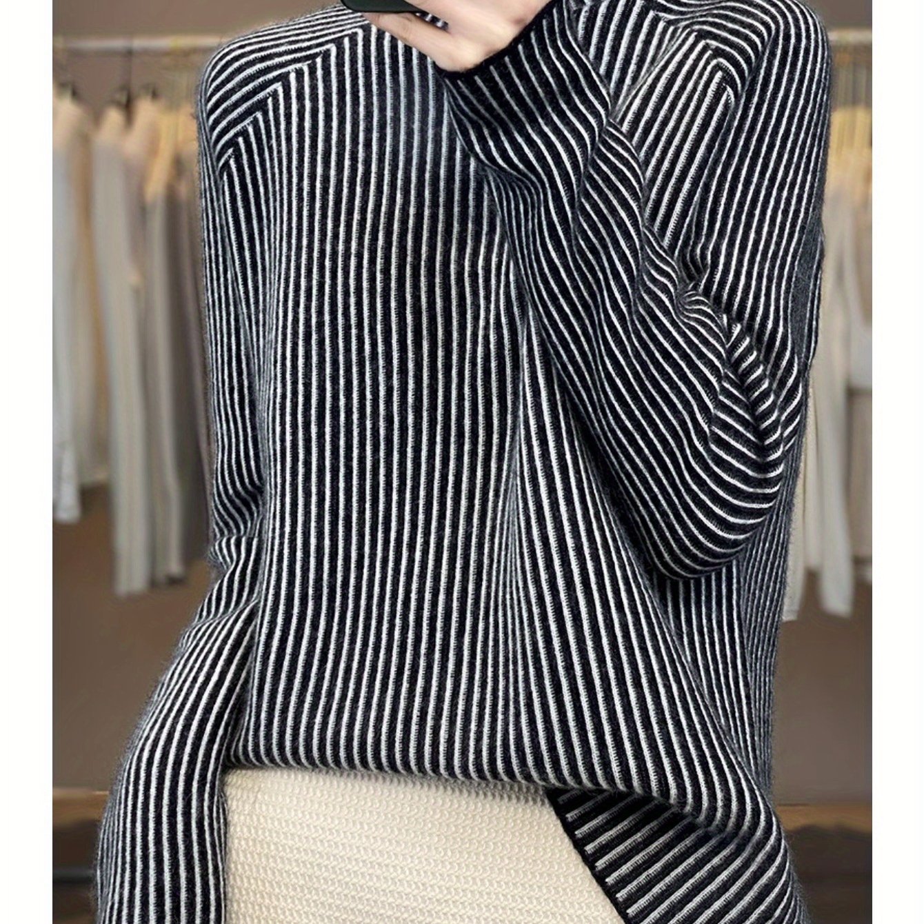 TEMU 여성용 우아한 두꺼운 하이넥 울 스웨터 | 부드러운 단색 긴팔 풀오버, 캐주얼 따뜻한 웨어, 심플한 미적 감각, 내구성이 뛰어나고 편안한 가을/겨울용