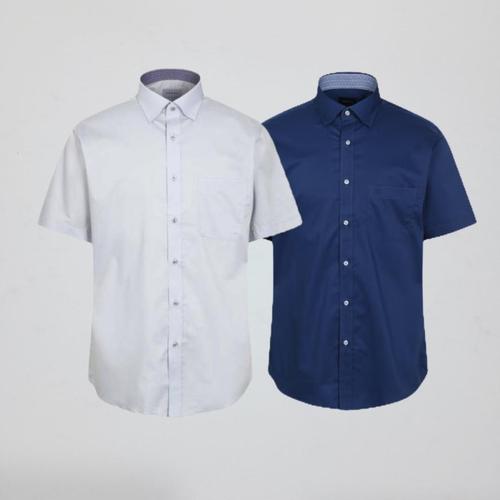 [예작]구김적은 코튼레이온 스판드레스셔츠 카라배색 스냅단추(똑딱이) 일반핏(루미) 반팔 Y601