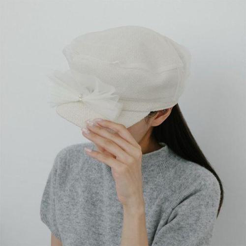 [다잇템]여자 진주 마도로스캡 쉬폰리본 오간자 모자