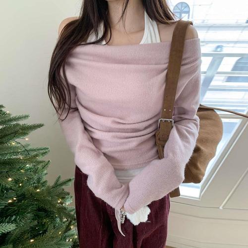 [옷자락]여성용 레이온 코튼 오프숄더 긴팔 셔츠 레이어드 티