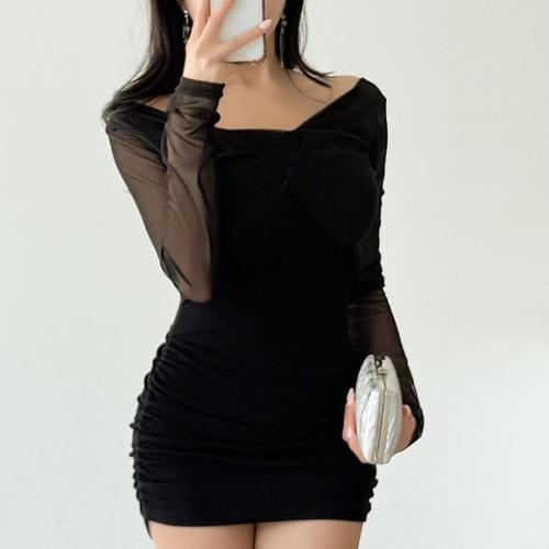 [미라클세븐]여성 오프숄더 시스루 랩스타일 드레스