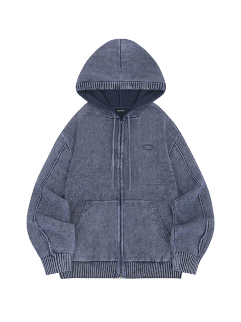 [오드스튜디오] 피그먼트 워싱 니트 후드집업 - NAVY