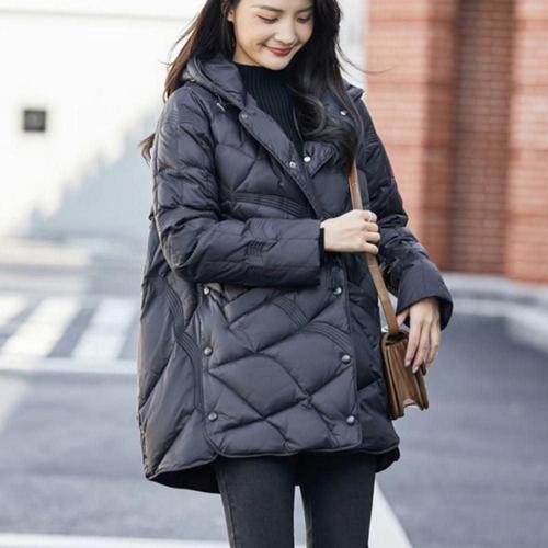 여성 덕다운 퀼팅 후드 롱 패딩 점퍼 아우터 오리털 코트