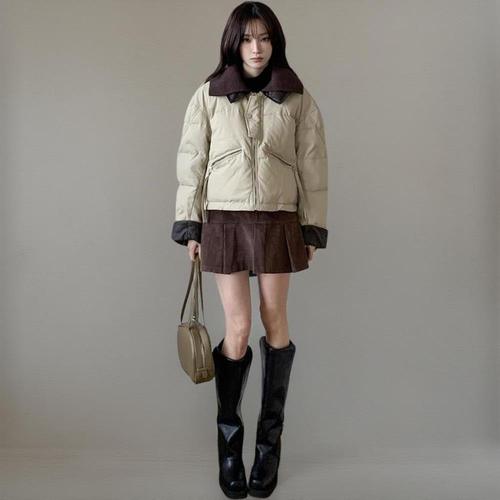 [디바옴므]코듀로이 오리털 패딩 두툼니트소매 집업 점퍼 경량 골프