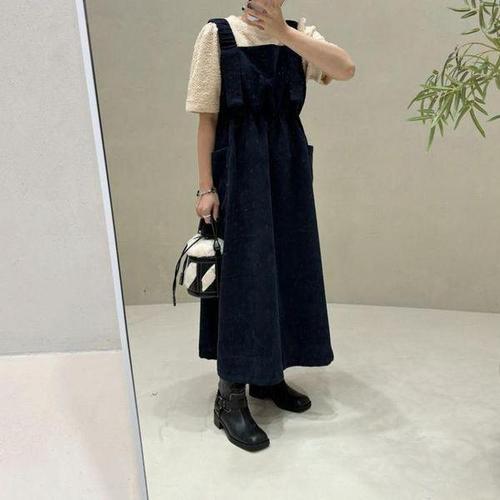 [옷자락] 여성 골덴 투포켓 스퀘어넥 오버롤 롱드레스