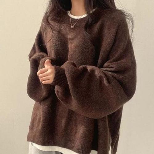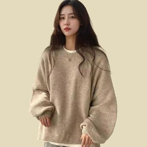 히르시온산 기본 O넥 기본 소매 스웨터 여성용 2025 오버사이즈 숏 니트 울 풀오버 여성 캐주얼 두꺼운 따뜻한 부드러운 탑