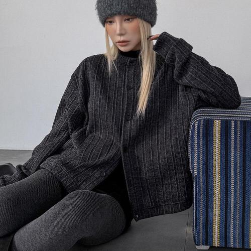 [옷자락]남녀 공용 스트라이프 라운드넥 오버사이즈 겨울 니트 가디건