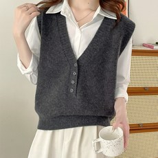 바바 여성 브이넥 반버튼 루즈핏 니트 조끼